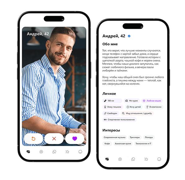 Всегда считал, что внешний вид не так важен, главное — харизма. Но после консультации понял, что люди судят по первым секундам. Сменил фото, поправил текст анкеты — и наконец-то появились совпадения! Андрей, 30 лет